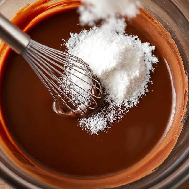 3. Whisk in Sugar: Incorporate powdered sugar and whisk the warm chocolate mixture until it becomes glossy.