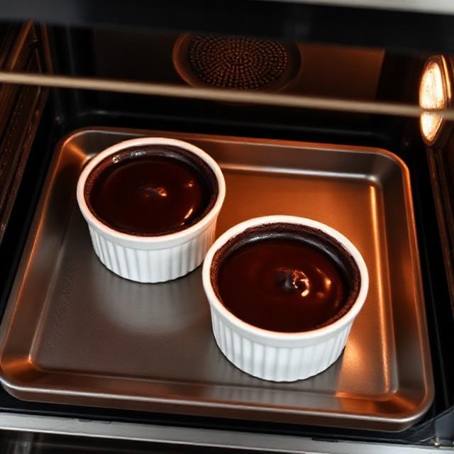 6. Bake: Divide the batter evenly into the prepared ramekins and bake at 425°F for 10-12 minutes. The cakes are done when the edges are set but the centers still jiggle slightly.